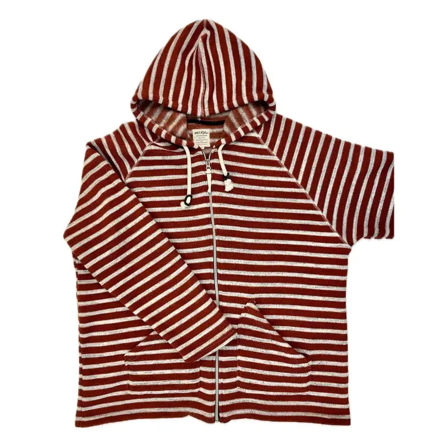 빨간색과 화이트 스트라이프 디자인, 후드 부착, 5L 사이즈의 NORdic 점퍼.