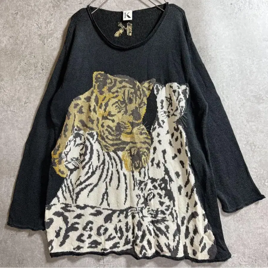 이탈리아 브랜드 KRIZIA의 빈티지 아이템. 독특한 동물 패턴 자카드가 인상적인 디자인. 오버 사이즈 실루엣으로, 구제 의류 마니아나 모드 패션에 추천합니다. 예술성이 높아 컬렉션 가치도 있습니다.