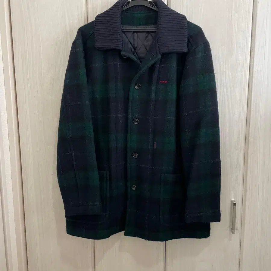 PAPAS 체크 코트 (그린과 짙은 네이비? 블랙? 체크) 포켓 포함 안감이 퀼트로 되어 있어 따뜻합니다. 사이즈 표기가 없지만 L 사이즈라고 생각합니다. 기장 약 79cm 가슴 너비 약 57cm 10년 정도 전에 구매. 잠시 착용한 후 몇 년간 자택 보관했습니다. 눈에 띄는 얼룩이나 노후화는 없지만, 장기간 자택 보관했던 물건임을 양해 부탁드립니다. 프로필도 확인해 주세요.
