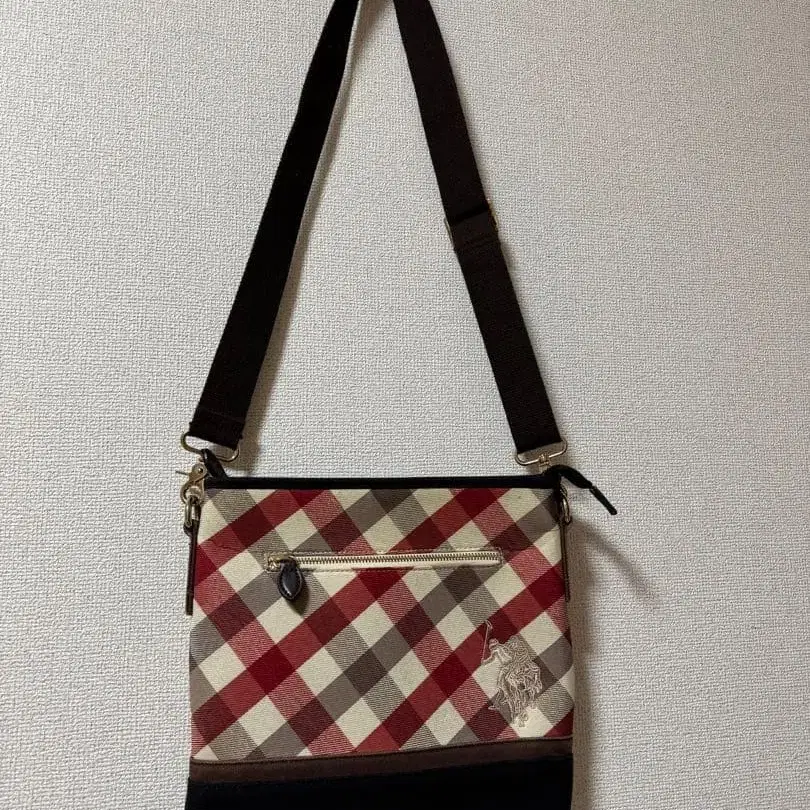 체크 무늬 숄더백 폴로 랄프로렌
