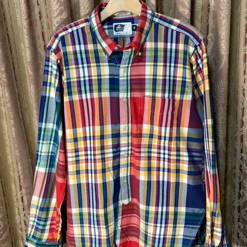 [ 상품 정보 ] 남성용 긴팔 셔츠입니다. 브랜드는 엔지니어드 가먼츠 뉴욕 제조이며, USA 및 NEW YORK 문자가 택 등에 기재되어 있습니다. 재질은 코튼(면) 100% 원단으로, 가볍게 착용하시기 좋습니다. 색상 및 특징에 대해 말씀드리자면, 사진에서 보시는 것처럼 빨간색, 옐로우 컬러, 블루 계열의 체크 무늬가 매우 광택 있는 셔츠입니다 (사진과 실물 간에는 다소 색감 차이가 있을 수 있습니다). 또한 포켓은 왼쪽 가슴에 있으며, 옷깃은 버튼 다운, 등 쪽에는 중앙에 턱이 있습니다. 사이즈는 표시상 M 사이즈이며, 실측 치수는 대략적으로 기장 76cm, 어깨 너비 45cm, 가슴 너비 53cm, 소매 길이 65cm 정도입니다. 컨디션에 대해 말씀드리자면, 착용이 극히 적어 큰 데미지 등 신경 쓰이는 부분은 없습니다. 다만 연식이 조금 지났기 때문에, 보관 기간 동안 생겼을지도 모르는, 육안으로 확인하기 어려운 미세한 손상 등이 있을 수 있습니다. 발송을 위해 포장하면 접힌 자국이 생길 수도 있습니다. 이러한 점들을 고려하여, 새 상품의 정가보다 훨씬 저렴한 합리적인 가격으로 판매합니다. 위 내용을 충분히 이해하신 후 구매해주시고, 원활한 거래를 잘 부탁드립니다. 해외 분과의 거래는 하지 않으니 양해 부탁드립니다. [ 발송 방법 ] 유유 메루카리 택배로, 배송비 포함입니다. 유패킷으로 발송 예정입니다. 색상 - 레드 계열 패턴 - 체크 디자인 - 버튼 다운(BD)
