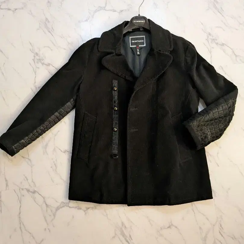 스웨이드 블랙 피코트, 퀼팅 슬리브 포함, XL 사이즈, 내부 포켓 있음. 옷깃을 세우면 멋스러움이 돋보입니다. GiorgioARMANI 조르지오 아르마니 EMPORIO ARMANI 엠포리오 아르마니 - 색상: 블랙 - 사이즈: XL - 내부 포켓: 있음 - 소재: 스웨이드풍 - 디자인: 퀼팅 슬리브 팔 부분 뒤쪽이 털이 있는 격자 무늬 가공으로 고급스러움을 연출합니다. 약간의 사용감은 있지만, 모양 망가짐 등의 데미지는 거의 없습니다. 사용 빈도가 매우 적었기 때문에 상당히 좋은 상태라고 생각합니다. 수트나 포멀한 복장 위에 입으면 매우 멋스럽습니다. 사이즈 측정값 어깨 너비: 52 가슴 너비: 58 소매 길이: 62 기장: 76 ※ 평평하게 놓은 개인 측정