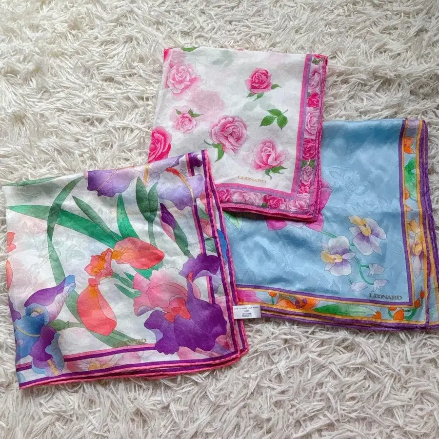 레오나르 스카프 손수건 모음 여성용 자카드 꽃무늬 실크