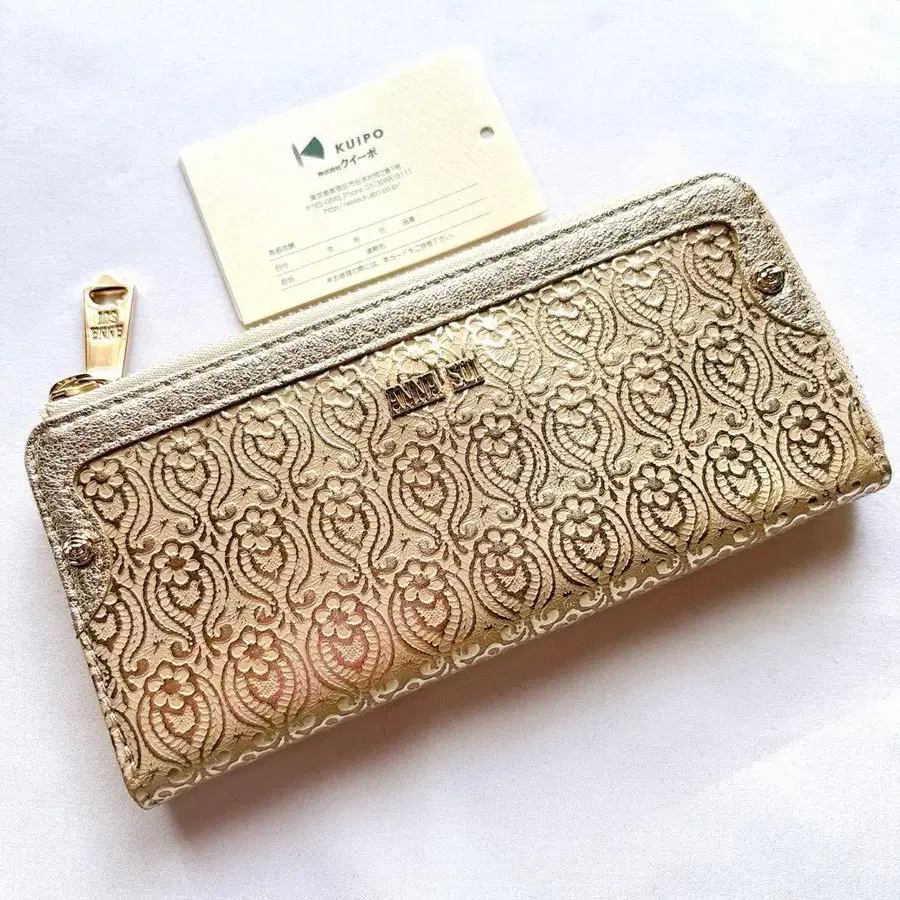 [ 새상품급 ] ANNA SUI 안나수이 골드 엠보 L자 지퍼 장지갑