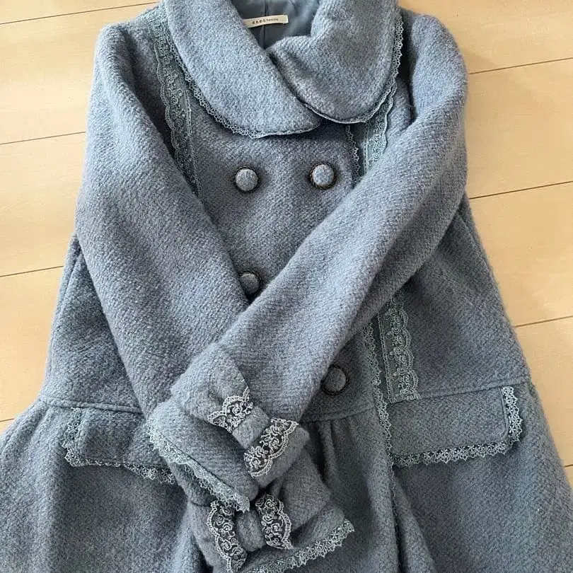 엑시즈팜 라이트 블루 더블 브레스트 코트