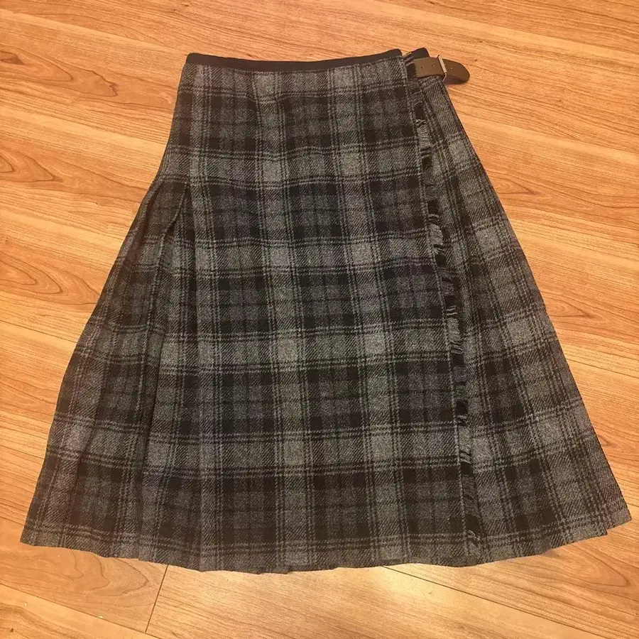 엔스위트 새상품 그레이 울 혼방 프린지 부착 타이트 스커트