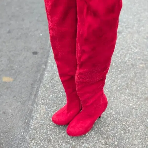 빨간색 스웨이드 느낌 롱 부츠 하이힐 레드
