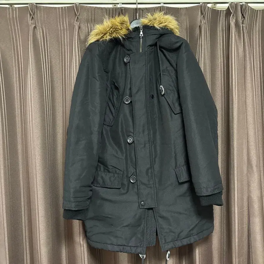 MOUSSY 밀리터리 라인 퍼 달린 모즈 코트 1 블랙 M 사이즈