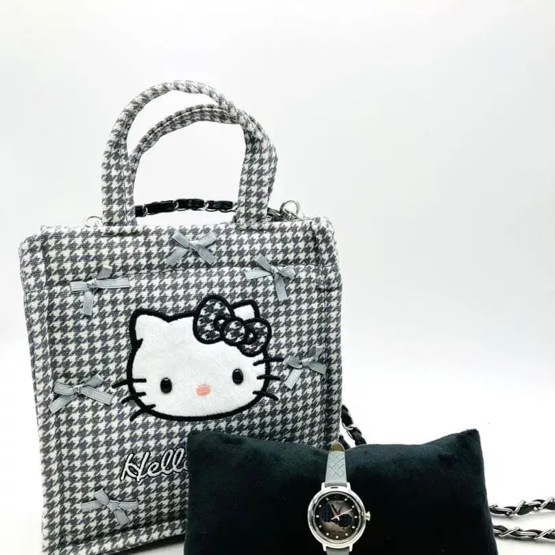 • 산리오 헬로키티 흑백 걸리시 쌍둥이 코디 워치 손목시계