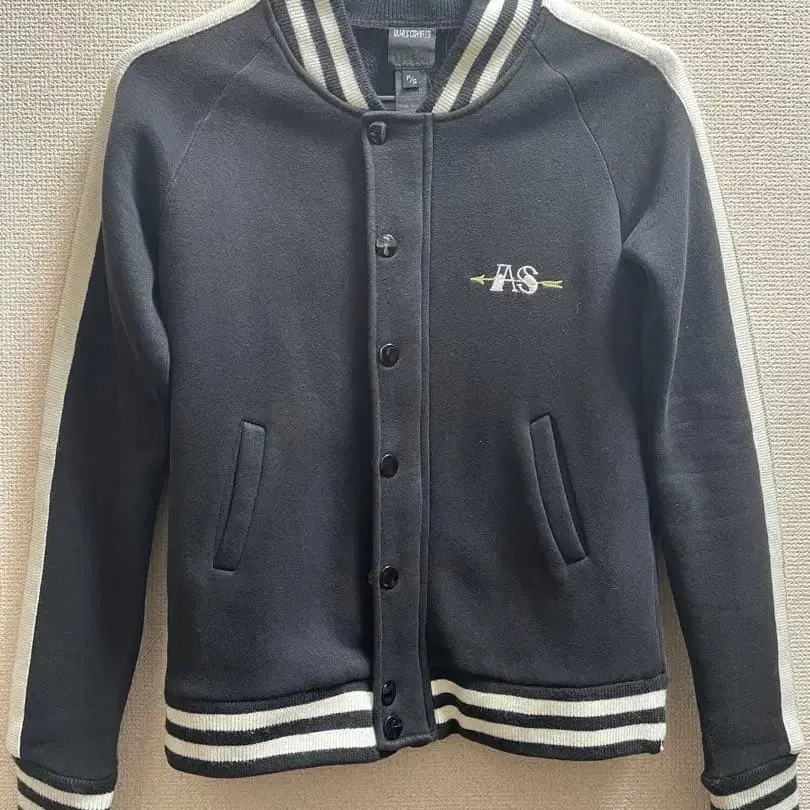 ANNA SUI x JAMES COVIELLO 콜라보 바시티 자켓입니다. 프론트에는 [ AS ] 자수가, 백에는 NYC 모티브의 백사 & 화살 럭셔리 자수가 새겨져 있습니다. 소매에는 라메 라인이 들어가 캐주얼하면서도 고급스러운 인상을 줍니다. 가벼운 맨투맨 소재로 봄/가을에 딱 맞는 아이템입니다. 약간 슬림한 실루엣으로 롱 스커트나 와이드 팬츠와도 궁합이 좋습니다. 구제 의류로 이해해 주시는 분께 양도합니다.