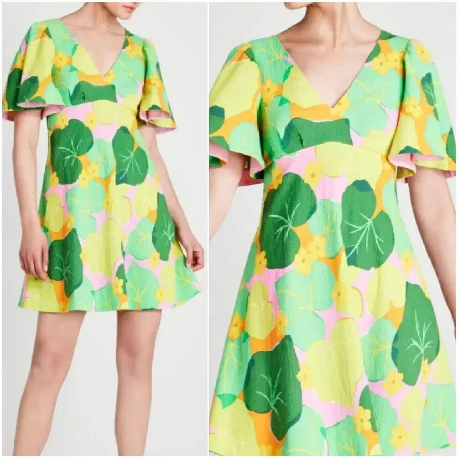새상품급 ◎ kate spade NEWYORK 케이트 스페이드 뉴욕 오이 플로럴 스윙 드레스 무릎 기장 원피스 멀티 컬러 다채색 보타니컬 정가 44,000엔