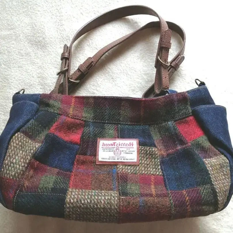 울 트위드 체크 무늬 토트백, 인조 가죽 핸들 포함. - 브랜드: 해리스 트위드 - 색상: 멀티 컬러 표면 패치 뒷면 체크 - 소재: 울 (트위드) 데님 - 핸들 소재: 인조 가죽 - 스타일: 코로포테 백 양쪽 포켓 - 바닥면: 평평한 바닥면 - 디자인: 앞면 체크 무늬 패치워크 - 세로 약 22.5cm 가로 약 33.5cm 바닥 약 13cm - 손잡이 약 50cm D링 포함 핸드메이드 작가님의 해리스 트위드 코로포테 백입니다. 양쪽 포켓과 바닥면 데님 지퍼 개폐 방문해 주셔서 감사합니다. 2번 사용했으며 새상품급이라고 생각합니다. 자택 보관품입니다. 잘 부탁드립니다.