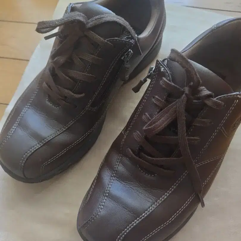 가죽 소재의 브라운 스니커즈, 지퍼가 달려 있어 신기 편합니다. - 브랜드: YONEX - 색상: 브라운 - 스타일: 스니커즈 - 소재: 가죽 - 특징: 지퍼 있음 새상품으로 구매하여 몇 번 사용했지만 비교적 깨끗합니다. 사이즈가 약간 작다고 느껴져 판매합니다. 방문해 주셔서 감사합니다. 얼룩, 찢김, 냄새 등 - 있음