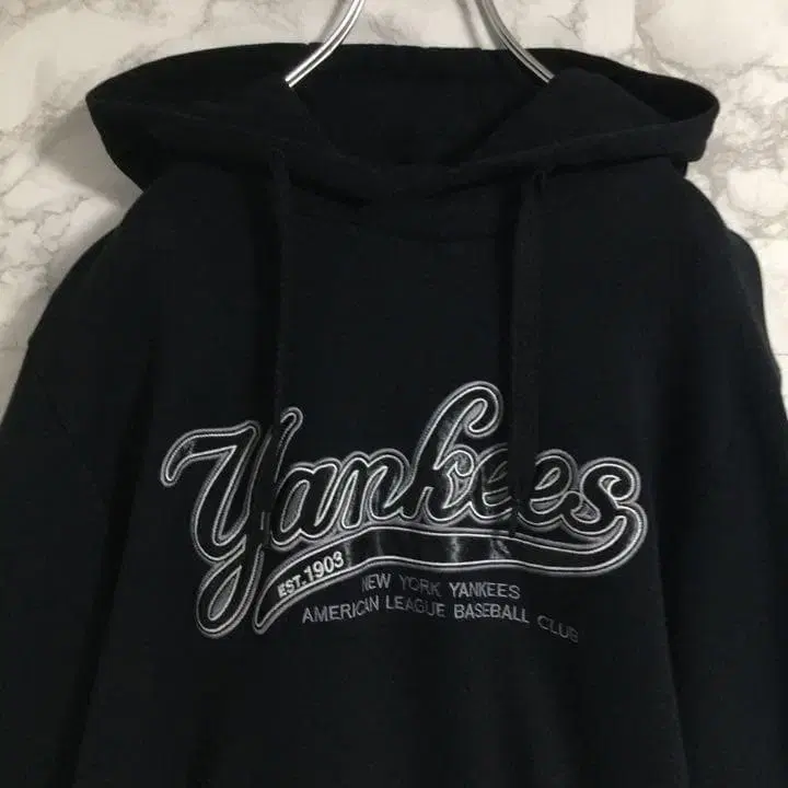 [빅 로고] 뉴욕 양키스 원포인트 자수 PO 후드티 블랙 XL