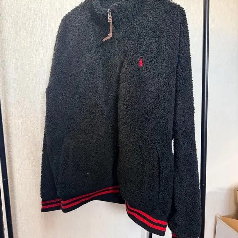 할인했습니다 POLO 플리스 자켓 블랙 레드 스트라이프