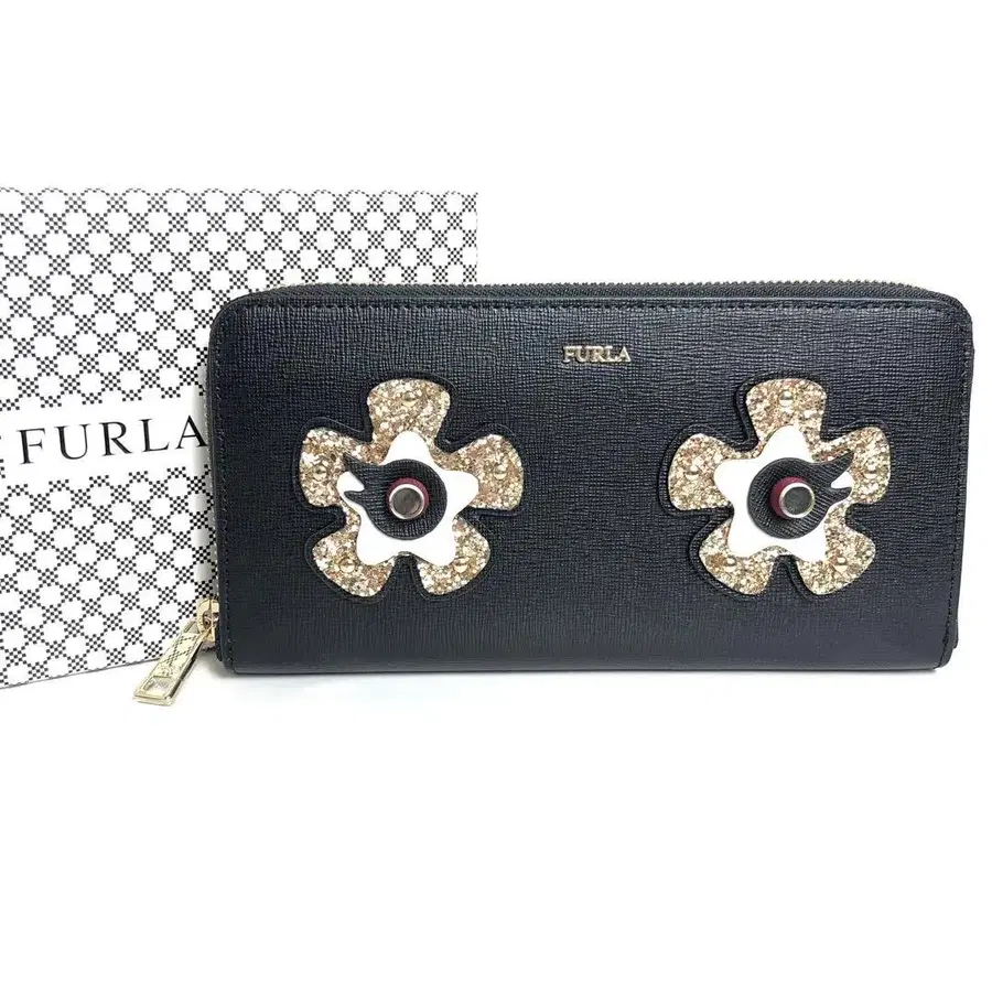 [ 미사용 보관품 ] FURLA 훌라 라운드 지퍼 장지갑 스팽글 블랙