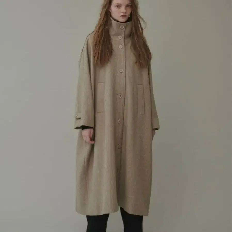 Libra cue 하이넥 볼륨 롱 코트 귀여운 코트 베이지