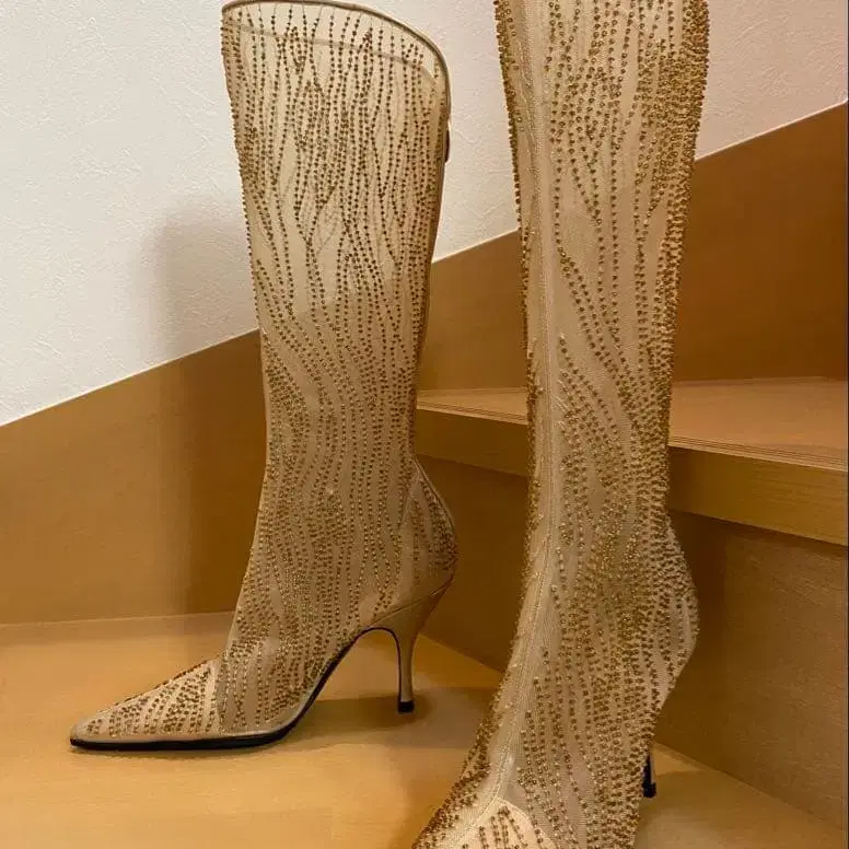 세르지오 로시 롱 부츠 메쉬/비즈 베이지 이탈리아제