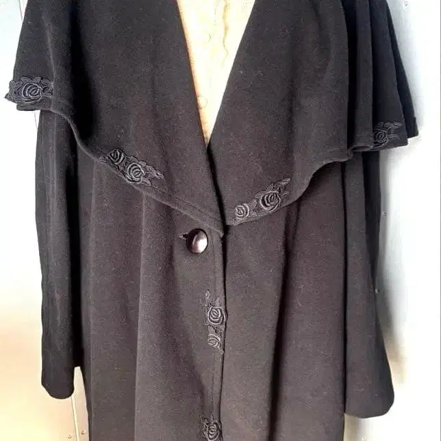 멋진 레이스 모티브가 사용된 고급스러운 하프 코트 재킷입니다.