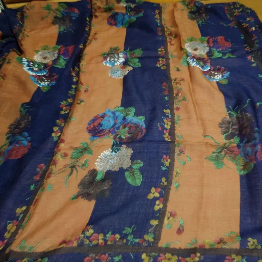 이탈리아제 살다리니 꽃무늬 스카프 네이비와 오렌지 미사용