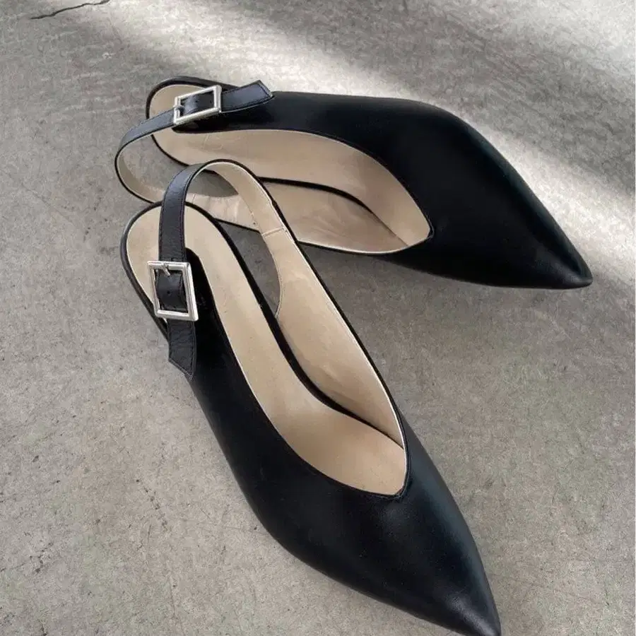 적당한 높이의 힐로 걷기 편하며, 백 슬링이라 착용 시 안정감이 있으면서도 신기만 하면 발에 내추럴함이 나와 전체적으로 가녀리게 마무리됩니다.
