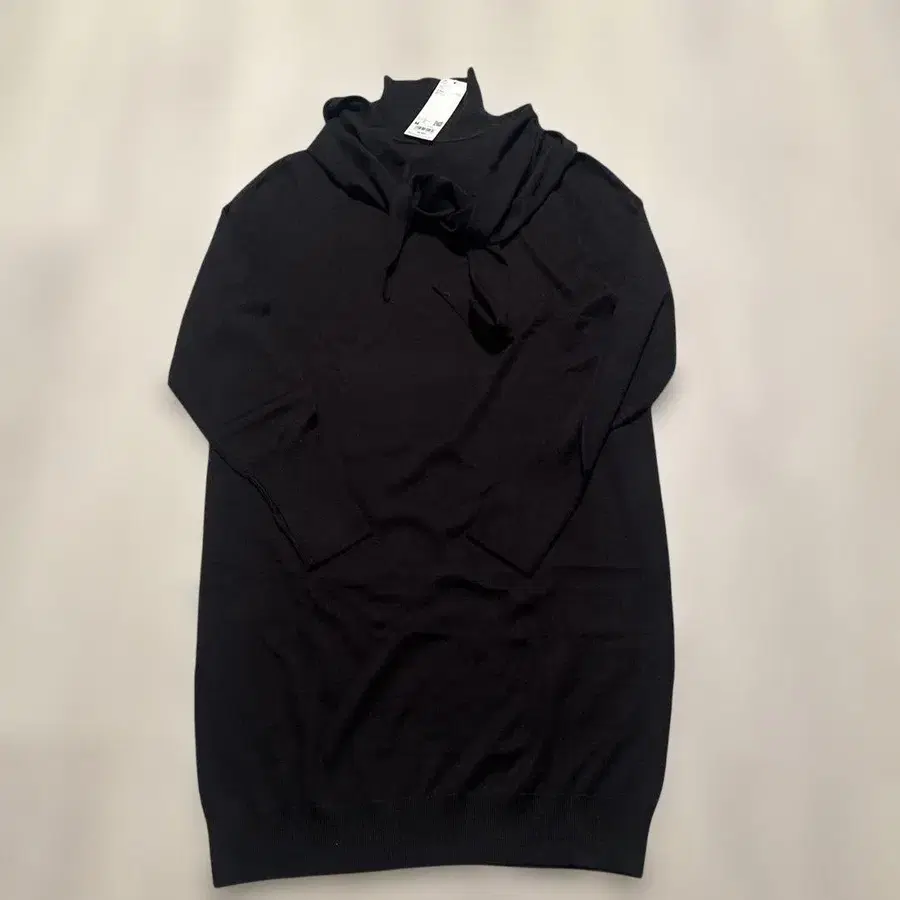 스카프 포함 블랙 니트 원피스, 부드러운 소재로 쾌적한 착용감.