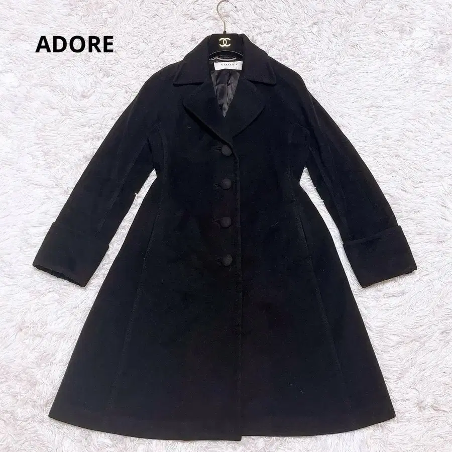 ADORE 고급 캐시미어 100% 롱 코트 플레어 블랙 38 M