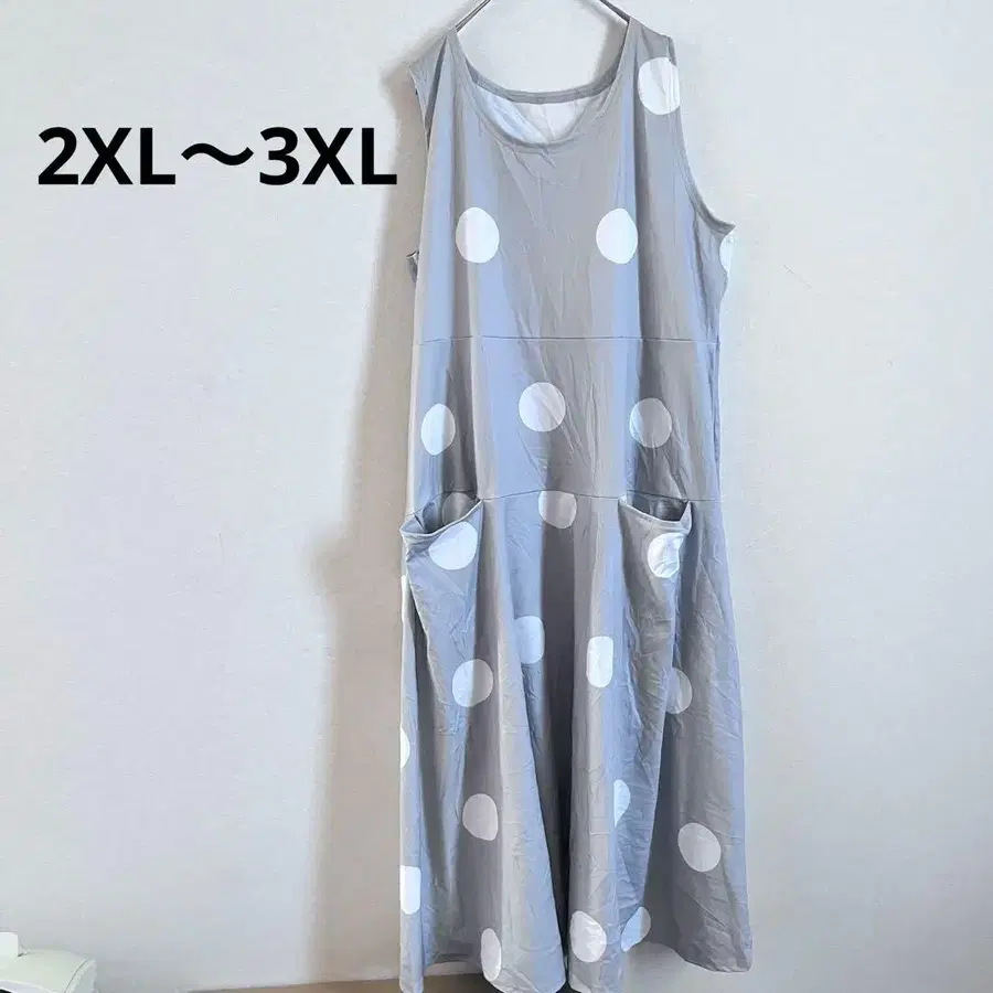2XL~3XL 그레이 도트 무늬 슬리브리스 원피스