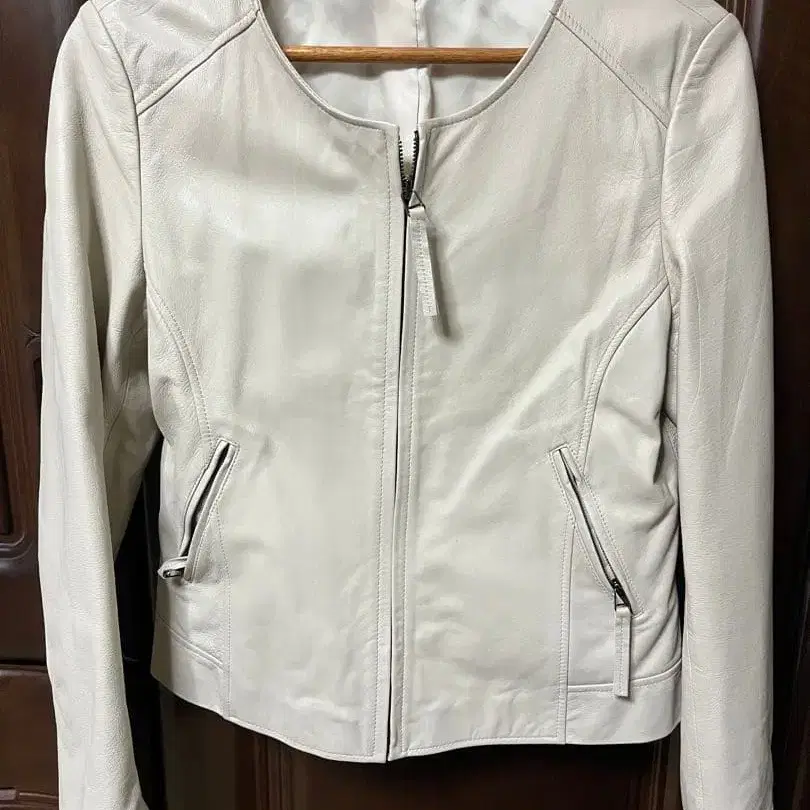 아이보리 가죽 자켓 양가죽