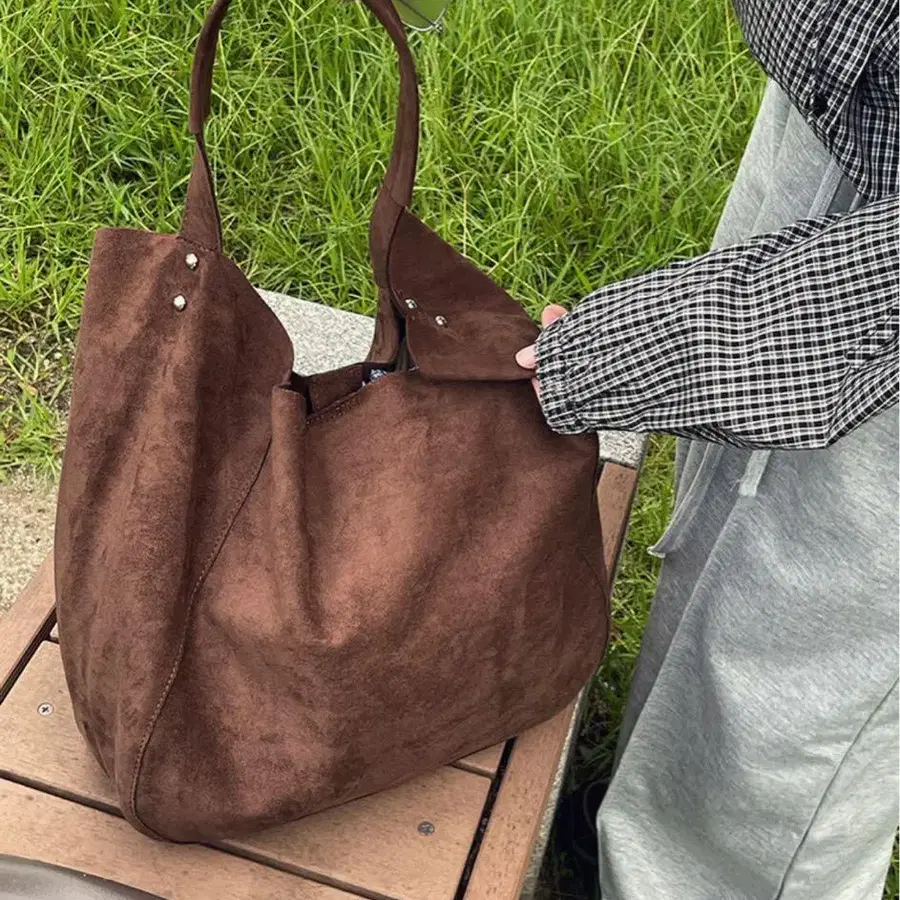코코아 브라운 스웨이드 핸드백 L 사이즈