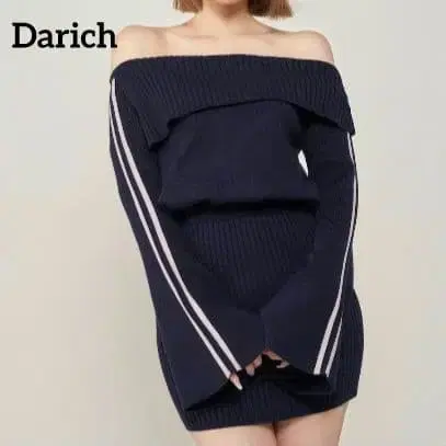 새상품급 Darich 오프숄더 라인 니트 미니 원피스 네이비 2way