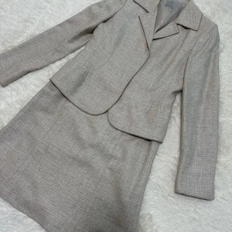 베이지 계열 스커트 수트, 세련된 디자인. 사진에서는 그레이처럼 보이지만 베이지 계열입니다. - 색상: 베이지 계열 - 스타일: 스커트 수트 - 사이즈: M (38) 방문해 주셔서 감사합니다.