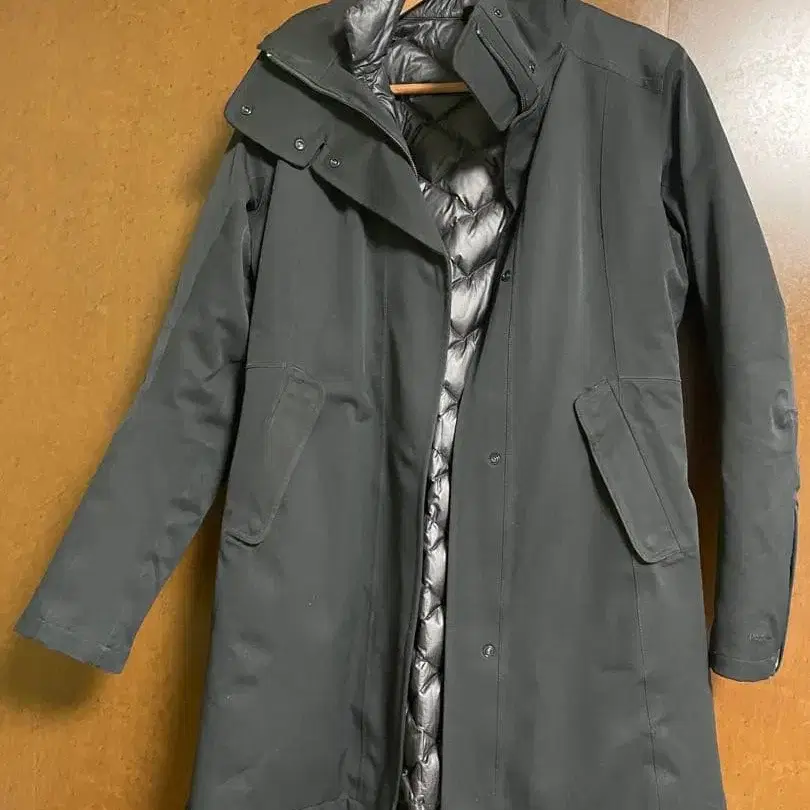 • 자유구 숄카라 다운 코트 38 블랙 토글 버튼 A라인 워셔블