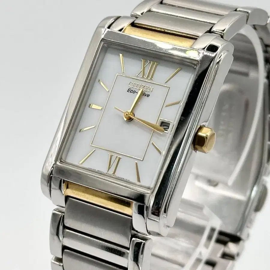 새상품급 작동 시티즌 손목시계 에코 드라이브 스퀘어형 솔라 남성용 데이트