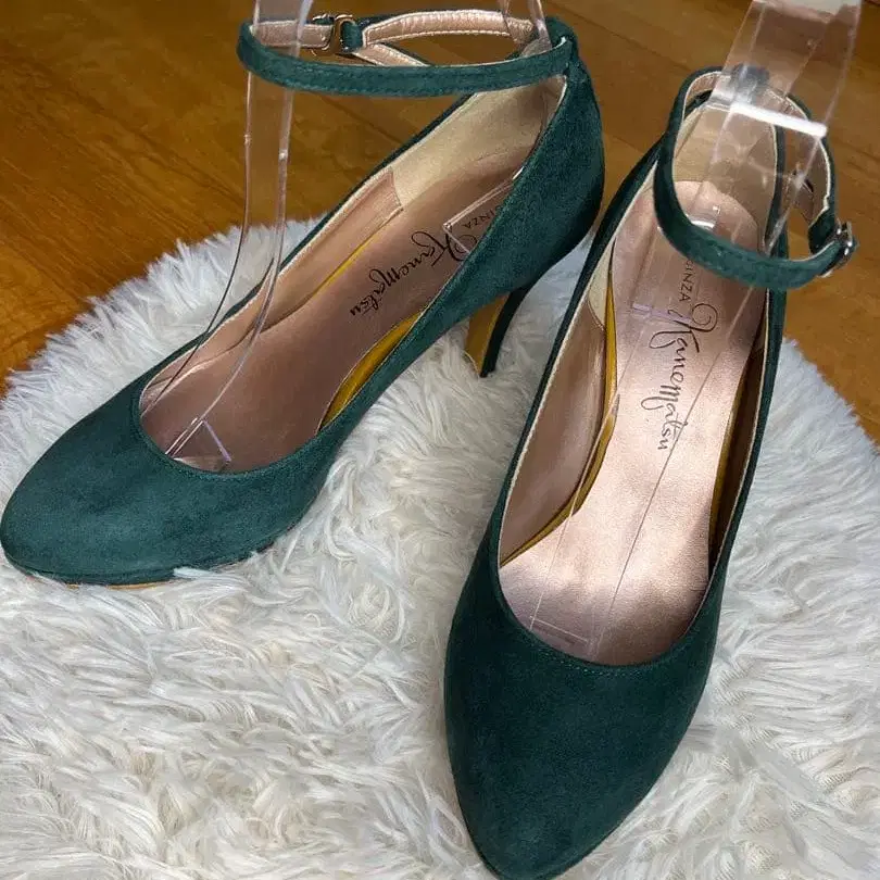 [ 새상품급 ] 긴자 카네마츠 그린 스웨이드 앵클 스트랩 펌프스