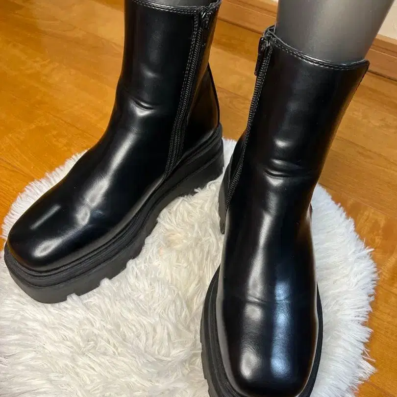 [ 새상품급 ] R&E 사이드 고어 부츠 트랙 밑창 통굽 블랙 블랙