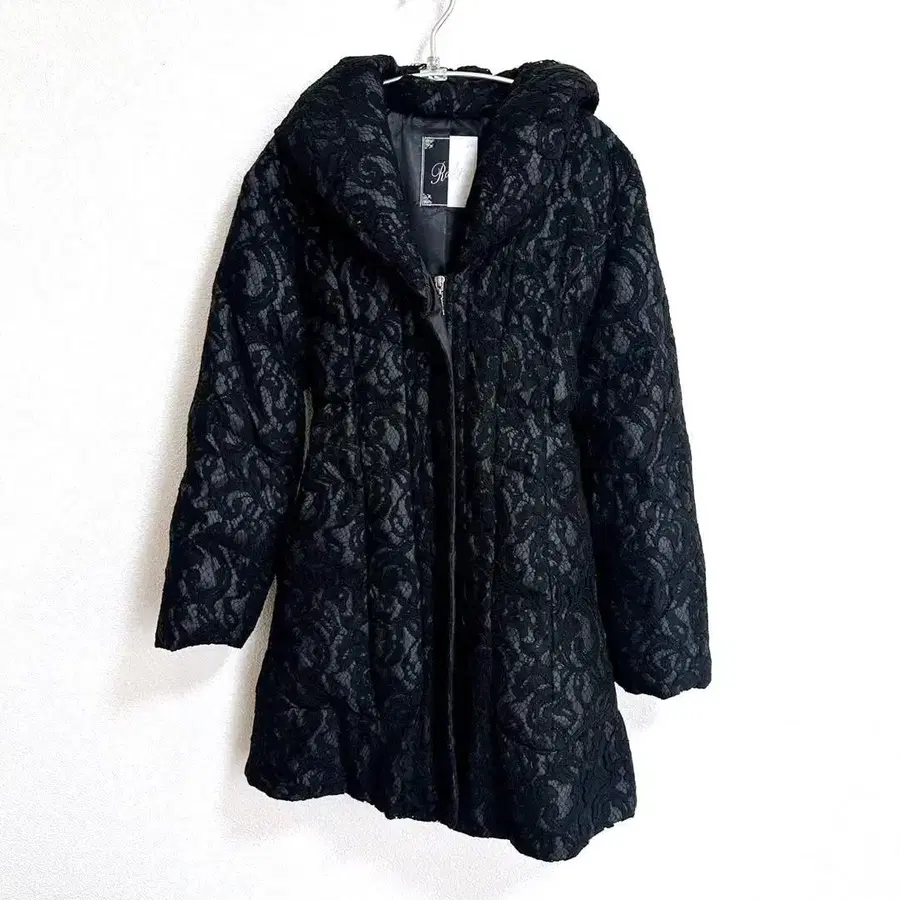 [ Rady ] 블랙 전체 레이스 벨데트 다운 코트 허리 리본