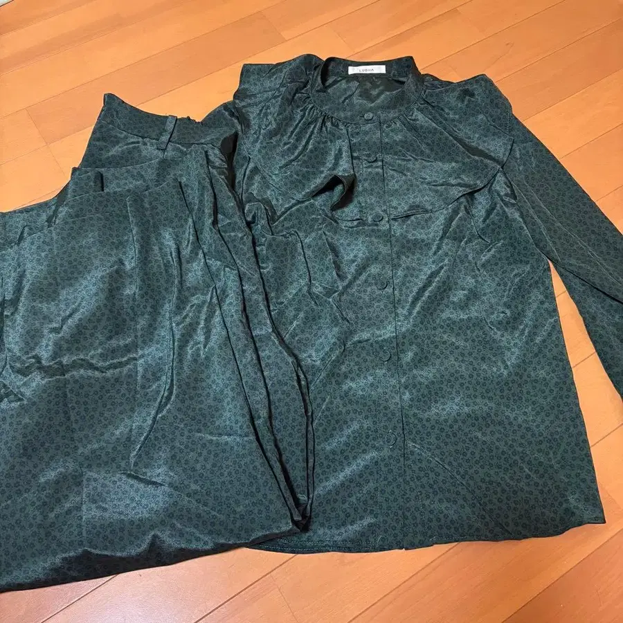 신주쿠 이세탄 lugha 다크 그린 새틴 셋업