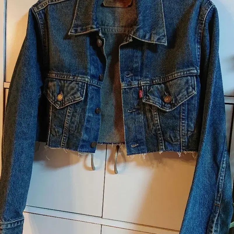 빈티지 70's ☆ 리바이스 70505 size 34 1970s 구제 의류 리바이스 데님 자켓 USA 아메리칸 캐주얼 표기 34 어깨 너비 약 43.5cm 가슴 너비 약 46cm 소매 길이 약 59.5cm 기장 약 40cm 여성용 M 사이즈 정도라고 생각합니다. 좋은 멋이 나온 리바이스의 데미지, 끝단 처리 안 된 데님 자켓입니다. 숏 기장으로 귀엽습니다.