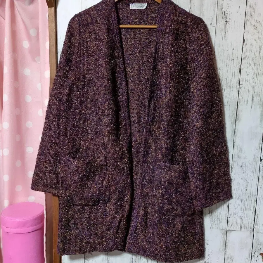 새상품 미사용 오카자키 사에 코코딜 핑크 샤기 긴팔 가디건