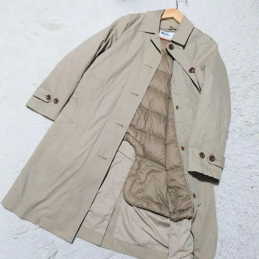 • MHL. 다운 라이너 포함 롱 코트 2 베이지 코튼 나일론