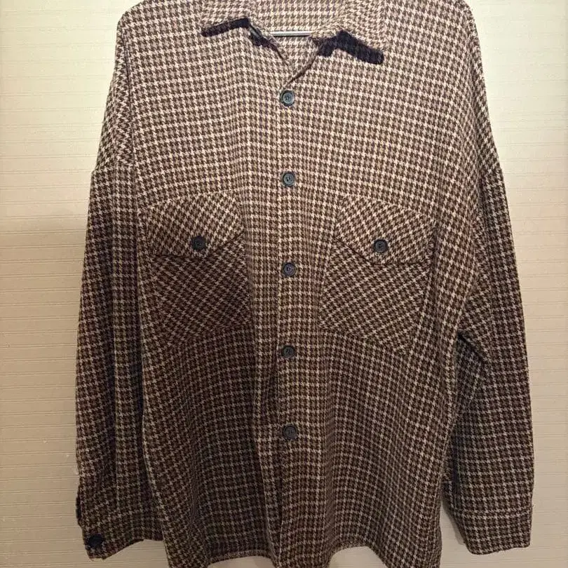 아우터 체크 무늬 체크 긴팔 셔츠 브라운