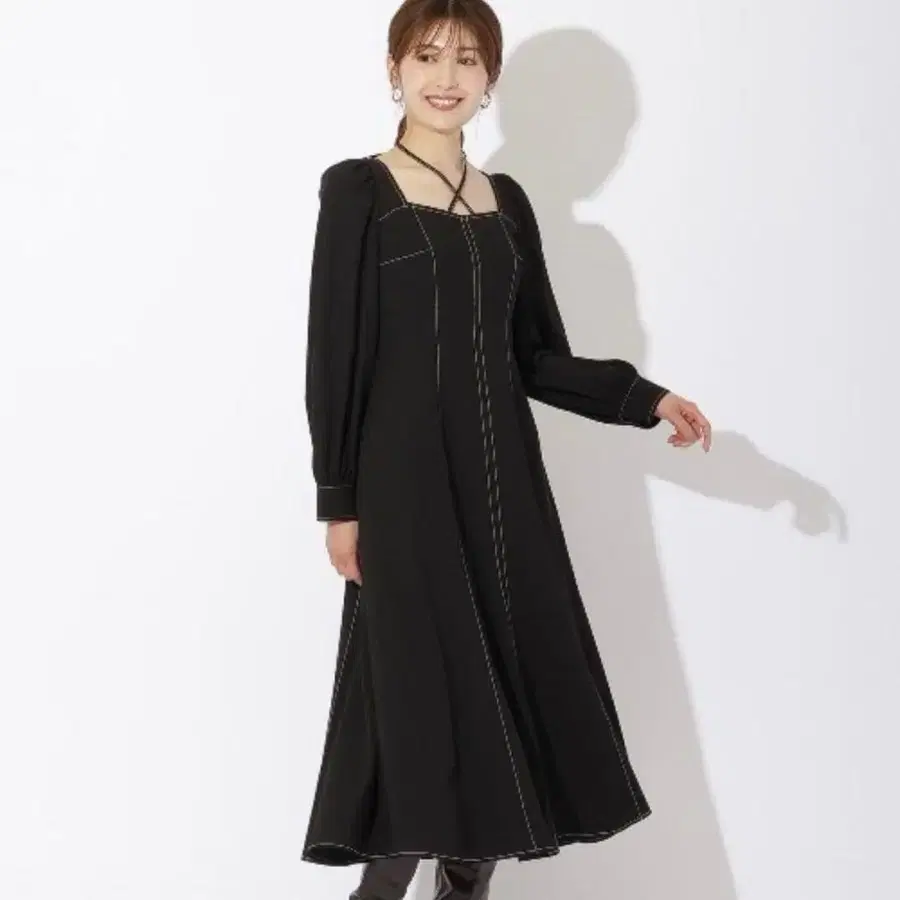 자동 번역되었어요. 원문보기And Couture(앙데팡당)의 크로스 넥 배색 스티치 원피스입니다.