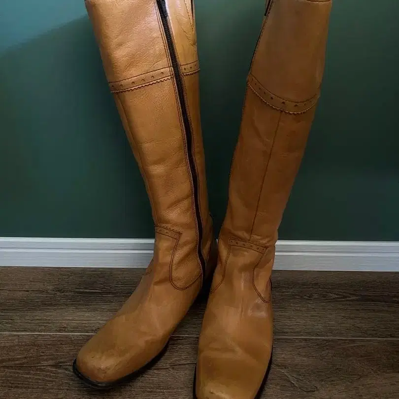 브라운 롱 부츠 사이드 지퍼 천연 가죽