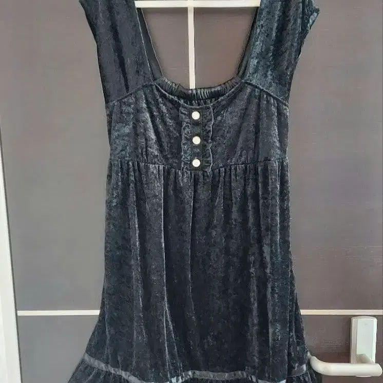 슬리브리스 벨벳풍 미니 원피스, 버튼 디자인과 프릴 밑단이 특징. - 색상: 블랙 - 디자인: 슬리브리스, 버튼 포함, 프릴 밑단 - 소재: 벨벳풍 방문해 주셔서 감사합니다.