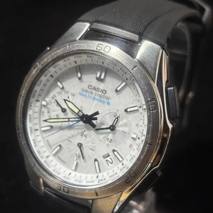 CASIO의 Wave Ceptor Multi Band 6는 전파 시계 기능을 탑재한 고정밀 아날로그 손목시계입니다. - 브랜드: CASIO - 모델: Wave Ceptor Multi Band 6 - 색상: 실버/화이트 - 소재: 스테인리스 스틸/러버 - 기능: 전파 시계 - 다이얼 타입: 아날로그 - 방수 성능: 10기압 방수 - 중고품: 약간의 흠집 등이 있습니다. 이미지로 확인 부탁드립니다. 방문해 주셔서 감사합니다. 다이얼 컬러 - 화이트 벨트 컬러 - 블랙 부속품 - 부속물 없음 작동 - 양호 흠집, 깨짐 등 - 있음
