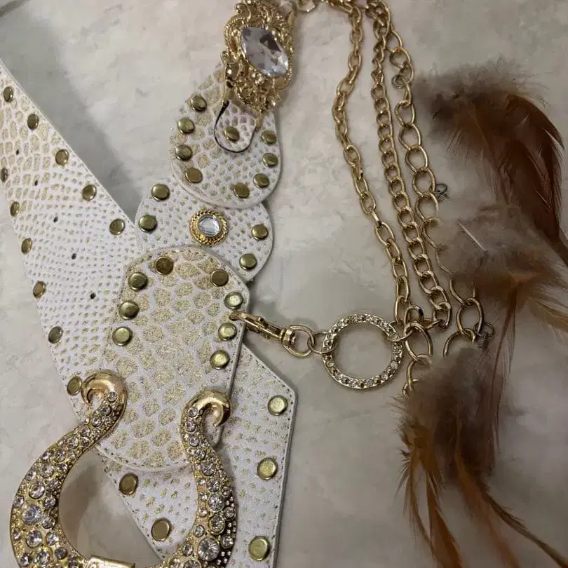 SALE 초레어 헤이세이 원조 d.i.a. 화이트 x 골드 페더 벨트