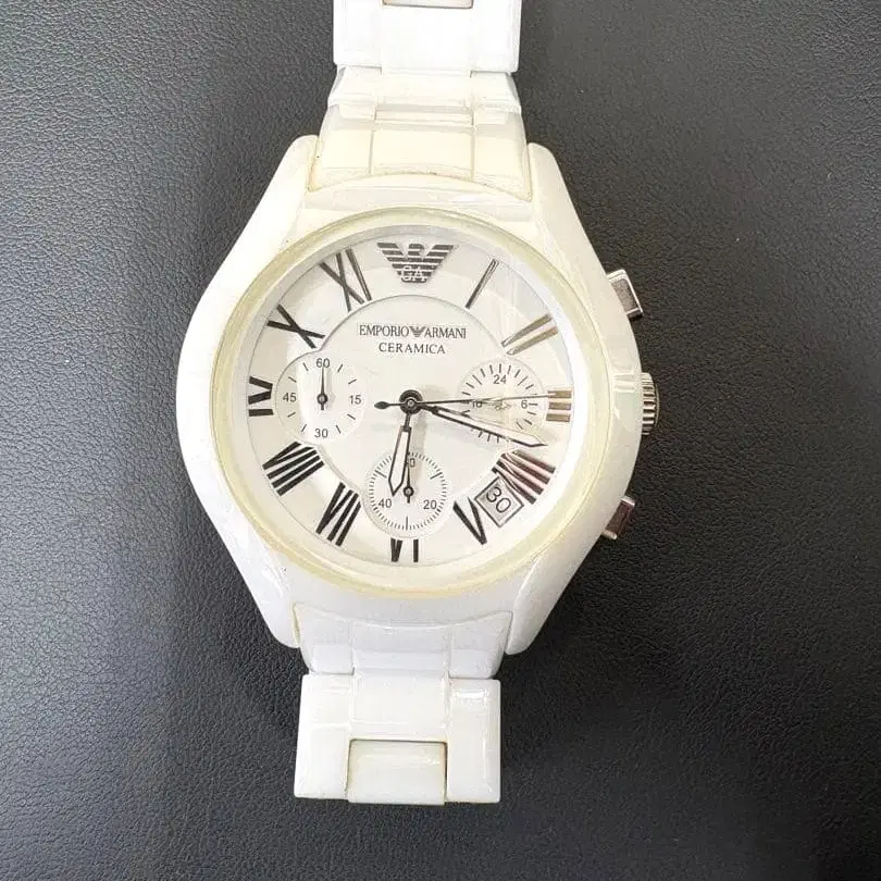 화이트 세라믹 크로노그래프 손목시계, 로마 숫자 다이얼 디자인. 작동 x 슬림한 사이즈입니다. - 브랜드: Emporio Armani - 색상: 화이트 - 모델: Ceramica - 기능: 크로노그래프 - 다이얼 디자인: 로마 숫자 - 백 케이스 디자인: 스틸 백 방문해 주셔서 감사합니다.