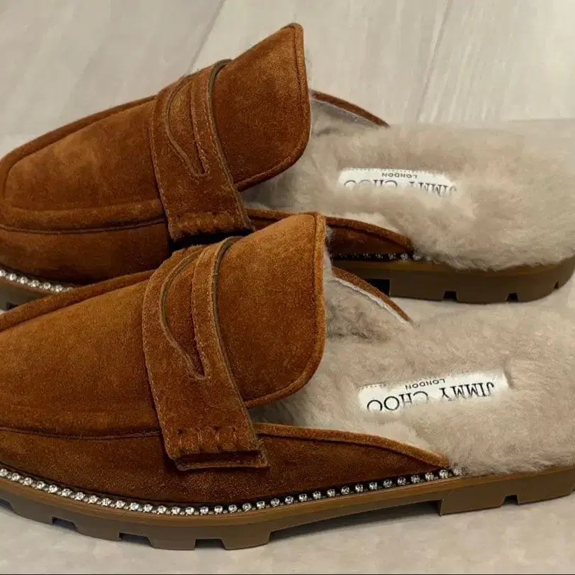 JIMMY CHOO RONNIE FLAT 브라운 로퍼 퍼, 비쥬 장식 소재: 스웨이드, 퍼 컬러: TAN/NATURAL (브라운) 사이즈: 36.5 (23.5cm) 수년 전 정가 11만 엔 정도에 구매했습니다. 시착만 한 새 상품입니다. 신을 기회가 없어 판매합니다. 상자는 약간의 얼룩, 벗겨짐 등이 있습니다.