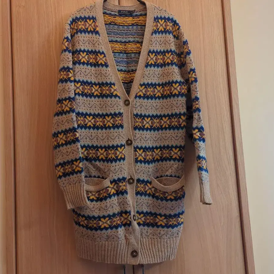 랄프 로렌. 기하학 패턴의 니트 가디건, 앞면 단추식, 포켓 2개 부착. 엉덩이를 완전히 덮는 롱 가디건. 고급 소재입니다. 면 코튼 52% 실크 34% 양모 울 12% 캐시미어 2% 어깨 너비 45 가슴 너비 50 기장 85 - 색상: 베이지, 파랑, 옐로우 컬러 - 디자인: 기하학 패턴 - 포켓: 앞면에 포켓 2개 - 버튼: 앞면에 버튼식 - 소재: 니트 - 패턴: 여러 색상이 사용된 무늬 방문해 주셔서 감사합니다.